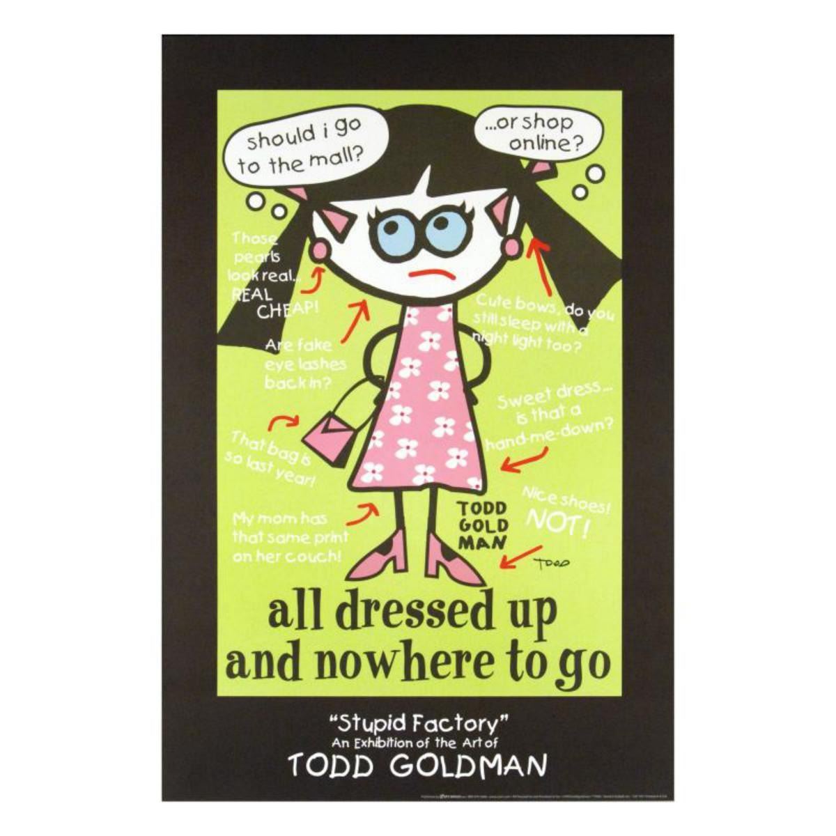 ADD THE IRREVERENT ARTWORK OF WORLD-RENOWNED ARTIST TODD GOLDMAN TO YOUR COLLECTION! Pop artist Todd Goldman is known all across the globe for his whip-smart and wickedly funny puns and pictures! "All Dressed Up and Nowhere to Go" is a fine art litho poster hand signed by Todd. Measures approx. 24" x 36" (poster). Reference #: 156150.