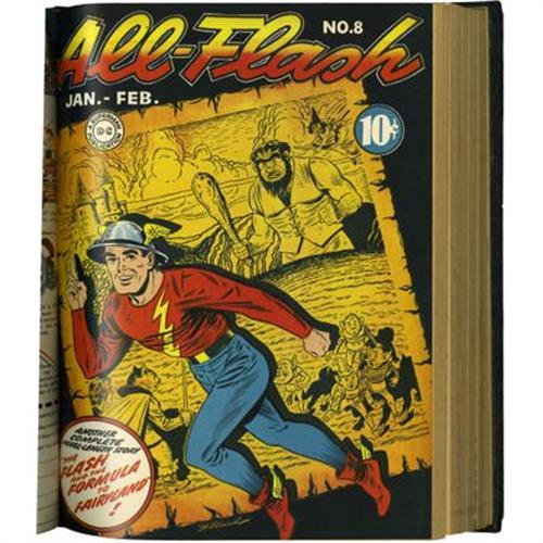<B>All-Flash #1-12 Bound Volume (DC, 1941-43).</B></I> Handsome copies of <B>All-Flash </B></I>#1 (origin retold), 2, 3, 4, #5 (first appearances of Winky, Blinky, and Noddy), 6, 7, 8, 9, 10, 11, and #12 (origin and first appearance of the Thinker), bound and trimmed into a sturdy hardcover volume. Most feature covers and art by E. E. Hibbard, and all are in great shape with glossy covers, and only moderate tanning and mild wear. The hardcover shows only minor wear to the edges and corners. Overstreet 2007 VG 4.0 value for group = $5,586.<BR><BR><b>Shipping:</b> Books & Catalogs (<a target="_blank" href="http://www.heritageauctions.com/common/shipping.php">view shipping information</a>)