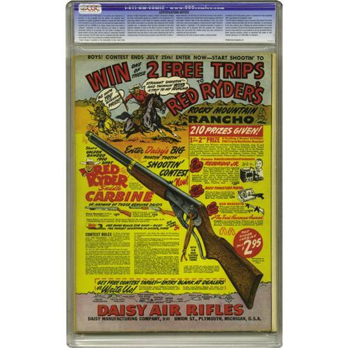 50. Since we cannot examine encapsulated notes or comics, they are sold "as is" without our grading opinion, and may not be returned for any reason. Auctioneer shall not be liable for any patent or latent defect or controversy pertaining to or arising from any encapsulated collectible. In any such instance, purchaser's remedy, if any, shall be solely against the service certifying the collectible.