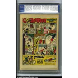 All-Flash #15 San Francisco pedigree (DC, 1944) CGC NM+ 9.6 White pages. The Flash introduces three new adventures on this cover, done by Martin Nodell in his whimsical, instantly recognizable style. San Francisco books come the closest to rivaling the quality of Mile Highs in consistency of quality, though they are far fewer in number. This copy is an outstanding example from the collection, grades out at an eye-popping NM+ 9.6 with white pages, and looks every bit as fresh as a Mile High. Overstreet 2002 NM 9.4 value = $825. Important notice: We expect to be auctioning lots at the rate of 200-250 per hour. Sometimes eBay Premier live bid software cannot keep up with that pace, so we strongly recommend that you place a realistic proxy bid now as insurance to avoid disappointment. Also please note that all Heritage/CAA lots purchased through eBay Premier carry a 20% Buyer's Premium.