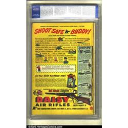 All-Flash #26 (DC, 1946) CGC VF/NM 9.0 Off-white to white pages. This book has to be one of the toughest of the run to find in high grade. The entire right half of the cover is solid black, with bold ink saturation, and there are no breaks in the pigment. The left half of the book is darkish green, meaning that any transverse stress creases at the spine would stick out like a sore thumb, but there are no creases to be seen here. Martin Nodell cover. Overstreet 2002 NM 9.4 value = $650. Important notice: We expect to be auctioning lots at the rate of 200-250 per hour. Sometimes eBay Premier live bid software cannot keep up with that pace, so we strongly recommend that you place a realistic proxy bid now as insurance to avoid disappointment. Also please note that all Heritage/CAA lots purchased through eBay Premier carry a 20% Buyer's Premium.