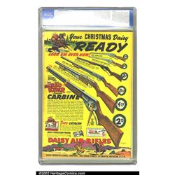 All-Flash #3 (DC, 1941) CGC NM+ 9.6 White pages. E.E. Hibbard delivers a full-length Flash story this issue, a perk the speedster enjoyed by having his own series. Featuring a blue cover of Flash tangling with a minotaur, this book is something to behold. Being CGC's highest graded copy to date, with white pages no less, the book appears flawless. No wear can be detected along the edges or spine, and the colors appear as fresh as the day they were printed. Unimprovable. Overstreet 2002 NM 9.4 value = $1,900. Important notice: We expect to be auctioning lots at the rate of 200-250 per hour. Sometimes eBay Premier live bid software cannot keep up with that pace, so we strongly recommend that you place a realistic proxy bid now as insurance to avoid disappointment. Also please note that all Heritage/CAA lots purchased through eBay Premier carry a 20% Buyer's Premium. Please make sure you read the Terms and Conditions.