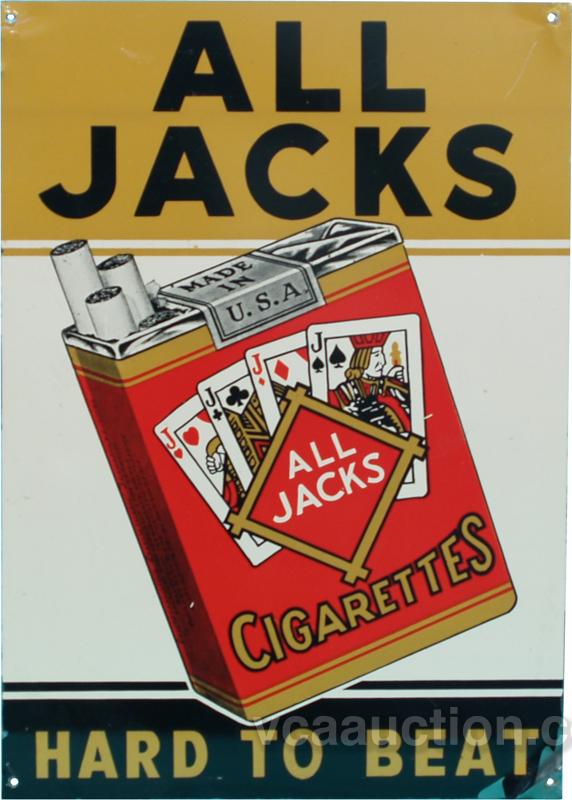 All Jack's Cigarettes Tin Sign, "Hard To Beat" - 9" x 14"