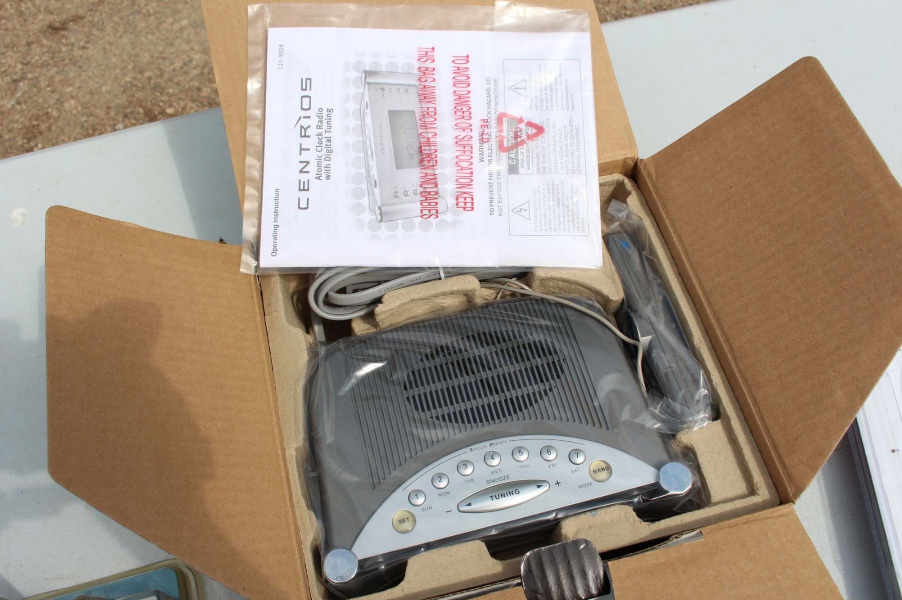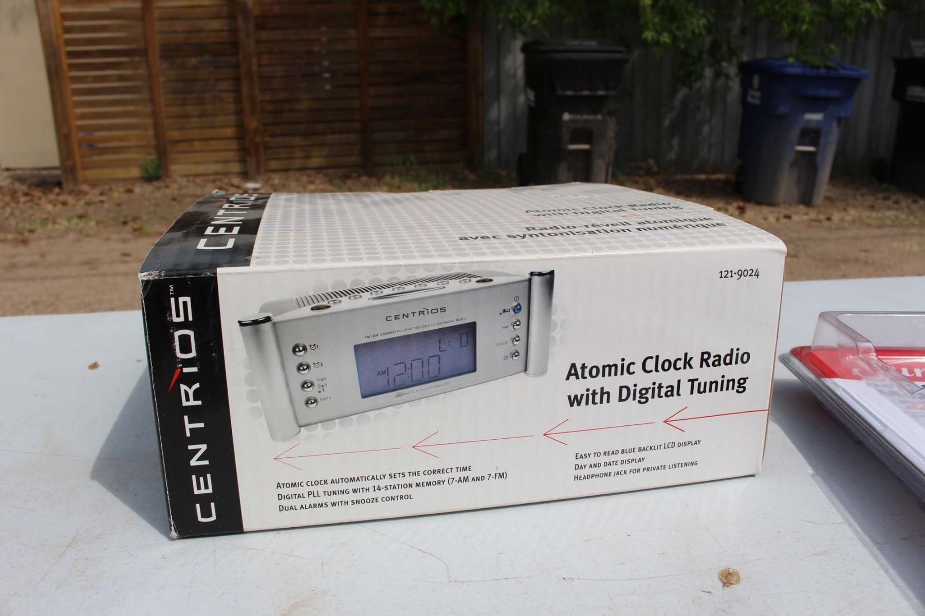 All NIB – Centrio Atomic Clock Radio, Maxel 2.1 Speaker System, Mosquito Repellents