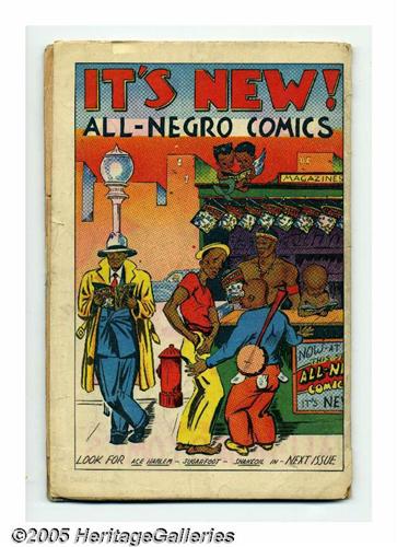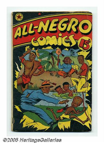 <B>All-Negro Comics #1 (All-Negro Comics, 1947) Condition: FR/GD.</B></I> This one-shot is a Gerber "9," or "very rare," and it's called "rare" by Overstreet as well. Note that it cost 15 cents back when a dime was the norm! This copy is FR/GD with brittle pages, but note that there aren't too many better ones out there -- Overstreet says, "seldom found in fine or mint condition; many copies have brown pages." Overstreet 2005 GD 2.0 value = $684.