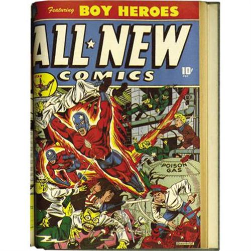 <B>All-New Comics #5-10 File Copies Bound Volume (Harvey, 1943-44).</B></I> Superb file copies of <B>All-New </B></I>#5, #6 (the Boy Heroes and Red Blazer stories begin; Black Cat appearance), #7 (Black Cat and Zebra appearances; art by Joe Kubert and Bob Powell), #8 (Shock Gibson appearance; art by Kubert and Powell), #9 (Black Cat appearance; Kubert Art), and #10 (Zebra appearance; Kubert art) -- all with covers by Alex Schomburg -- trimmed and bound into a single hardcover volume. The books are in great condition with minimal wear, bright covers with some instances of loss of color and gloss, and off-white to cream pages. Overstreet 2007 VG 4.0 value = $1,008.<BR><BR><b>Shipping:</b> Books & Catalogs (<a target="_blank" href="http://www.heritageauctions.com/common/shipping.php">view shipping information</a>)