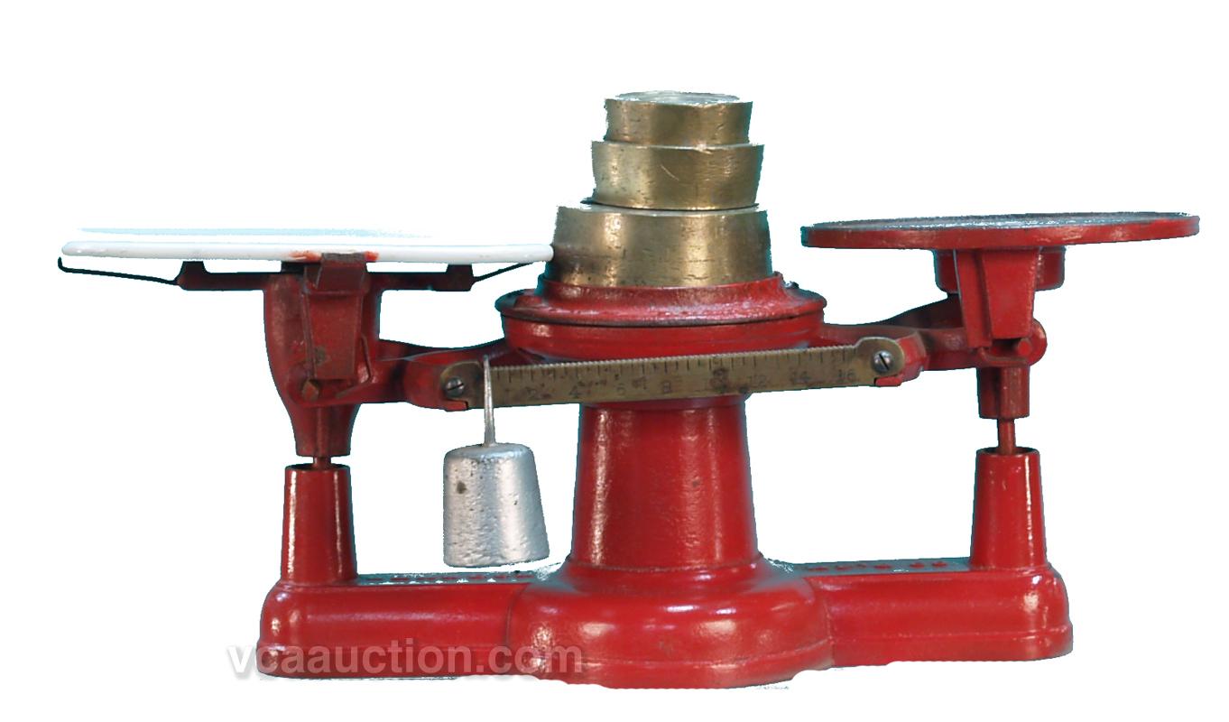 All Original Cast-Iron Countertop "Howe" Scale w/ original porcelain tray & weights, in good condition