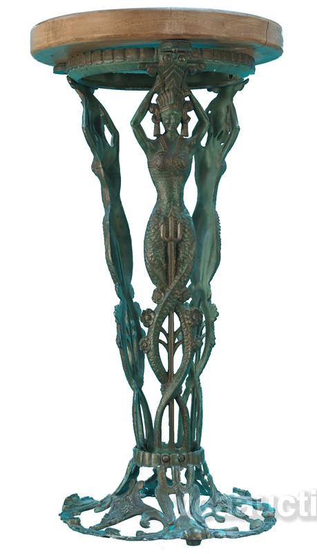 All Original Cast-Iron Lady Figural Base Small Game Table w/ wood top - 33" tall & 17" diam