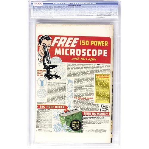 50. Since we cannot examine encapsulated notes or comics, they are sold "as is" without our grading opinion, and may not be returned for any reason. Auctioneer shall not be liable for any patent or latent defect or controversy pertaining to or arising from any encapsulated collectible. In any such instance, purchaser's remedy, if any, shall be solely against the service certifying the collectible.