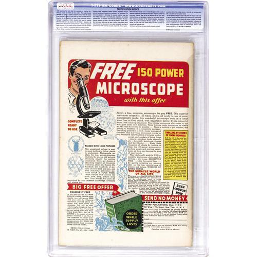 50. Since we cannot examine encapsulated notes or comics, they are sold "as is" without our grading opinion, and may not be returned for any reason. Auctioneer shall not be liable for any patent or latent defect or controversy pertaining to or arising from any encapsulated collectible. In any such instance, purchaser's remedy, if any, shall be solely against the service certifying the collectible.