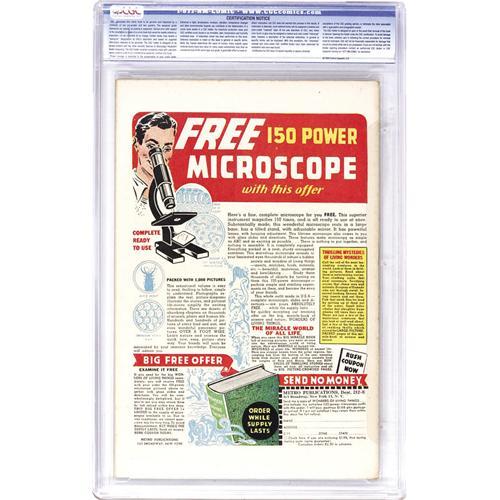 50. Since we cannot examine encapsulated notes or comics, they are sold "as is" without our grading opinion, and may not be returned for any reason. Auctioneer shall not be liable for any patent or latent defect or controversy pertaining to or arising from any encapsulated collectible. In any such instance, purchaser's remedy, if any, shall be solely against the service certifying the collectible.