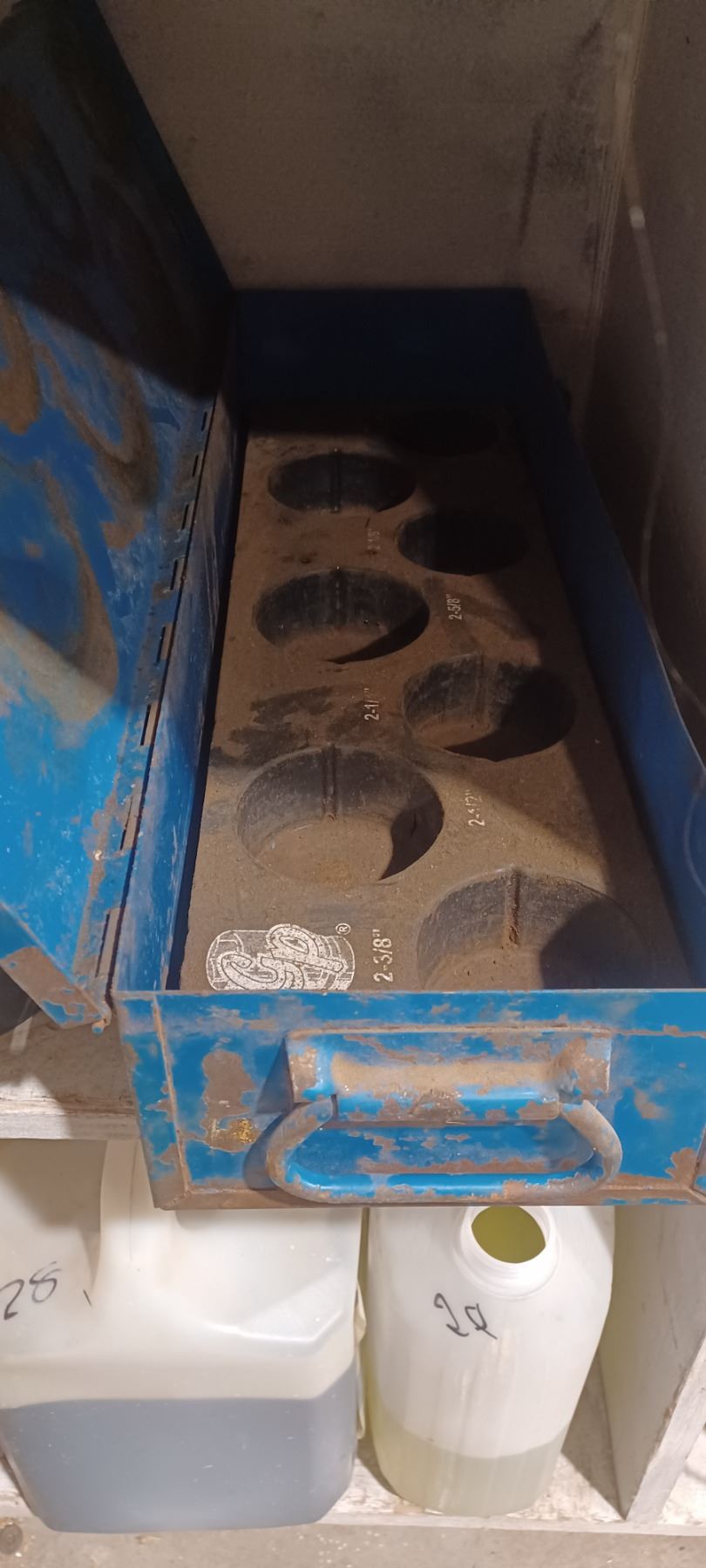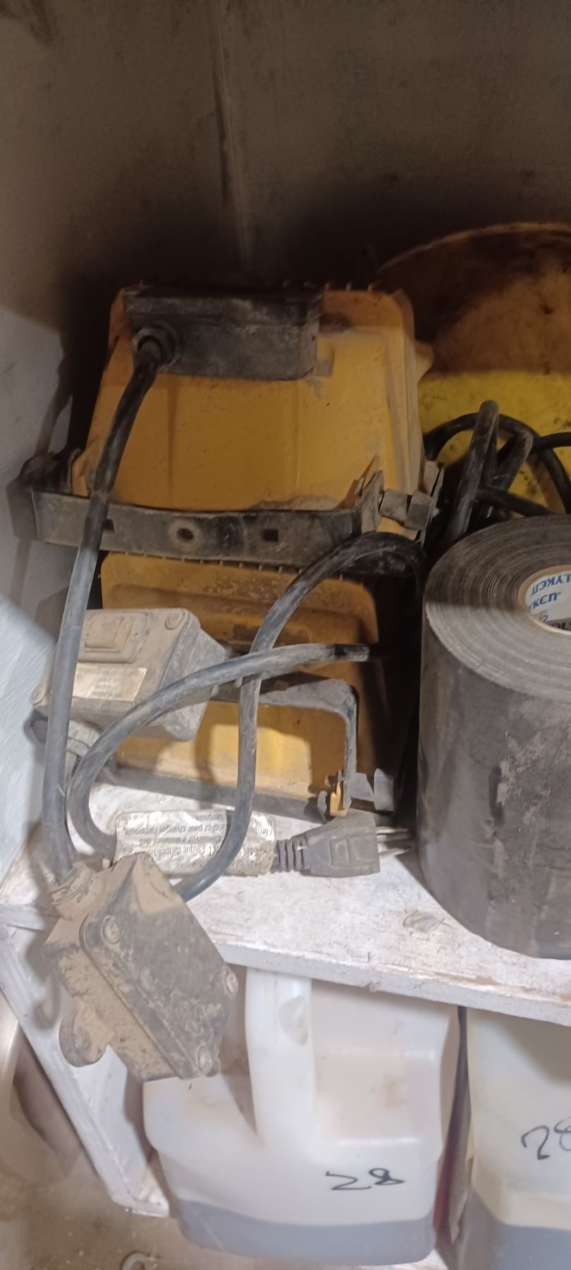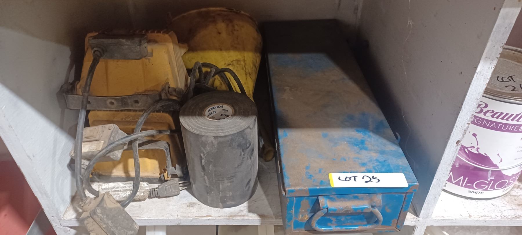 Contents on shelf 2 flood lights Tape Box Funnel Etc.