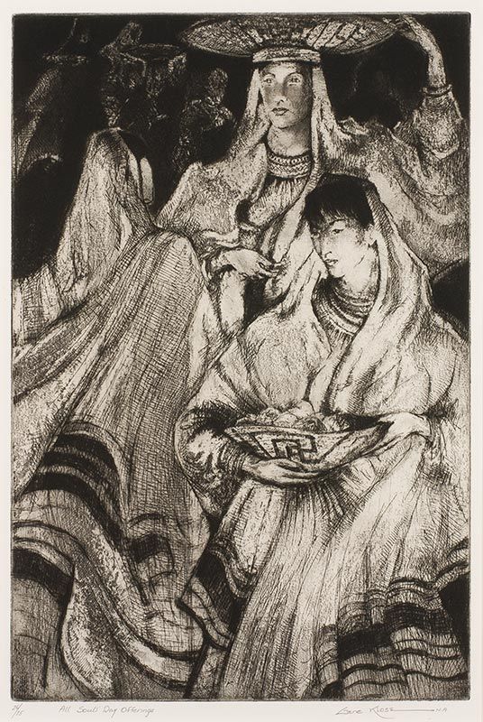 Gene Kloss, 1903 - 1996 NA | Signed: 26/75 All Soul's Day Offerings l/l, Gene Kloss N.A., l/r | Media: Intaglio print | Dimensions: 15 by 10 inches