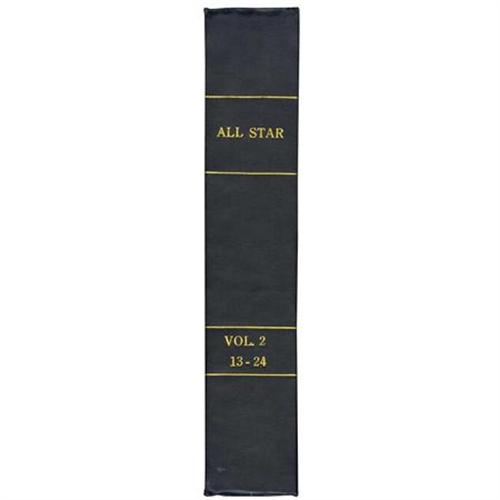 <B>All Star Comics #13-24 Bound Volume (DC, 1942-45).</B></I> Collectors get very passionate about their runs of <B>All Star</B></I>, and even in the highly unlikely event that you have all of these issues, the opportunity to secure a bound volume with nice page quality (cream to off-white, no brittleness) should not be missed. As it happens, this volume contains M. C. Gaines' office copies -- Gaines' firm All-American Comics (which was allied with DC) was the publisher of this title for the first couple of years. The covers of all of these Justice Society books look superb, on a par with any high-grade "loose" copies you might find. As usual, these comics have been trimmed in the binding process. Overstreet 2007 VG 4.0 value for group = $4,662.<BR><BR><b>Shipping:</b> Books & Catalogs (<a target="_blank" href="http://www.heritageauctions.com/common/shipping.php">view shipping information</a>)