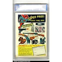 All-Star Comics #3 (DC, 1940). One of the most significant books in four-color history, this issue features the debut of the Justice Society of America, comics' first super-team! An extremely difficult book to find in an unrestored grade (as of this writing, CGC lists only two other unrestored books nicer than this one), this is a solid mid-grade copy. There is some definite spine wear, including a 1" split from the bottom and some pencil markings on the cover, but the book presents well and shows excellent eye-appeal. Colors are strong and vibrant, and the book has an overall look that is much nicer than its grade would indicate. CGC FN 6.0 Off-white pages. Overstreet 2001 FN 6.0 value = $9,600.  Important notice: We expect to be auctioning lots at the rate of 200-250 per hour. Sometimes eBay Premier live bid software cannot keep up with that pace, so we strongly recommend that you place a realistic proxy bid now as insurance to avoid disappointment. Also please note that all Heritage/CAA lots purchased through eBay Premier carry a 20% Buyer's Premium.