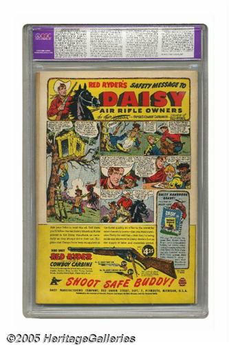 50. Auctioneer offers no opinion as to the validity of a grade assigned by any third-party grading service. Since we cannot examine C.G.A. encapsulated notes or Comics Guaranty Corporation (CGC) encapsulated comics, they are sold "as is" without our grading opinion, and may not be returned for any reason. Auctioneer shall not be liable for any patent or latent defect or controversy pertaining to or arising from any encapsulated collectible. In any such instance, purchaser's remedy, if any, shall be solely against the certification service certifying the collectible.