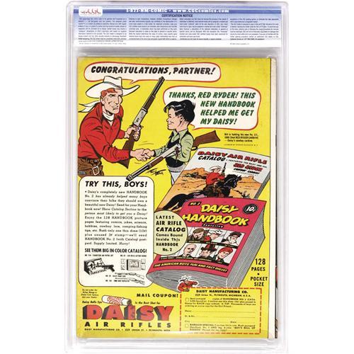 50. Since we cannot examine encapsulated notes or comics, they are sold "as is" without our grading opinion, and may not be returned for any reason. Auctioneer shall not be liable for any patent or latent defect or controversy pertaining to or arising from any encapsulated collectible. In any such instance, purchaser's remedy, if any, shall be solely against the service certifying the collectible.