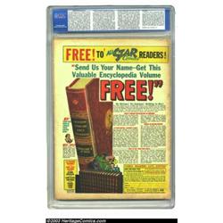 All Star Comics #7 (DC, 1941) CGC VG+ 4.5 Off-white pages. Superman, Batman, and the Flash make guest appearances in this keen issue, in part to help the Justice Society of America raise money for the orphans of World War II. Check out the front cover's formal appeal. Even that comedic sidekick of Green Lantern, Doiby Dickles, lends a hand to help the sons and daughters of those who made the ultimate sacrifice. This copy is solid with great colors. Overstreet 2003 VG 4.0 value = $672. Important notice: Heritage usually auctions material at the rate of 200-250 lots per hour. On some occasions eBay Live bid software or the Internet may not be able to keep up with the pace of the auction. We recommend placing a realistic absentee bid now as insurance to avoid disappointment. Occasionally the auctioneer may eliminate or reject an eBay Live bid, and the auctioneer may also reopen a lot after the close of the eBay live bidding (usually because we missed an audience bid), and may reject your bid even if it shows you as the winning bidder. By bidding via eBay Live, you agree that Heritage may award the lot to another bidder at its sole discretion under the circumstances described above or any other reasonable circumstances. Also please note that all Heritage lots purchased through eBay Live carry a 20% Buyer's Premium. Please make sure you read the Terms and Conditions before you bid.