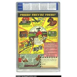 All Star Comics #8 (DC, 1942) CGC VG+ 4.5 Cream to off-white pages. The comics trivia question that sets apart the "dabblers" from the true Golden Age connoisseurs is this: What was Wonder Woman's first appearance? Wonder Woman #1? Nah, you're not even close. Sensation #1? Nope. It was this early issue of All Star that featured most important female character in all of super-hero comics in a nine-page back-up story. She didn't even rate a position on the cover, but her impact on the world of comic books would be tremendous. This is a solid, pleasing copy, certainly not the best, but far from the worst. One interesting note: there is a penciled "D" in the upper left hand corner, much like the prized fabled Mile High copies. Overstreet 2003 VG 4.0 value = $5,334. Important notice: Heritage usually auctions material at the rate of 200-250 lots per hour. On some occasions eBay Live bid software or the Internet may not be able to keep up with the pace of the auction. We recommend placing a realistic absentee bid now as insurance to avoid disappointment. Occasionally the auctioneer may eliminate or reject an eBay Live bid, and the auctioneer may also reopen a lot after the close of the eBay live bidding (usually because we missed an audience bid), and may reject your bid even if it shows you as the winning bidder. By bidding via eBay Live, you agree that Heritage may award the lot to another bidder at its sole discretion under the circumstances described above or any other reasonable circumstances. Also please note that all Heritage lots purchased through eBay Live carry a 20% Buyer's Premium. Please make sure you read the Terms and Conditions before you bid.