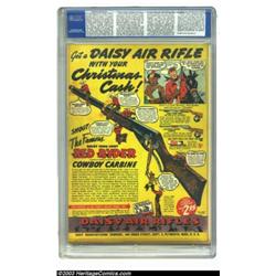 All Star Comics #9 (DC, 1942) CGC FN- 5.5 Off-white pages. In a most odd story, J Edgar Hoover is made an associate member of the Justice Society of America in this issue. Typical of DC covers of this era, this issue features the heroes trying to look their coolest as they ponder the fate of the world. The "girlfriends" of the members of the JSA also make appearances in this issue. Only some edge chipping at the bottom of the front cover prevents this copy from grading higher. Overstreet 2003 FN 6.0 value = $900. Important notice: Heritage usually auctions material at the rate of 200-250 lots per hour. On some occasions eBay Live bid software or the Internet may not be able to keep up with the pace of the auction. We recommend placing a realistic absentee bid now as insurance to avoid disappointment. Occasionally the auctioneer may eliminate or reject an eBay Live bid, and the auctioneer may also reopen a lot after the close of the eBay live bidding (usually because we missed an audience bid), and may reject your bid even if it shows you as the winning bidder. By bidding via eBay Live, you agree that Heritage may award the lot to another bidder at its sole discretion under the circumstances described above or any other reasonable circumstances. Also please note that all Heritage lots purchased through eBay Live carry a 20% Buyer's Premium. Please make sure you read the Terms and Conditions before you bid.