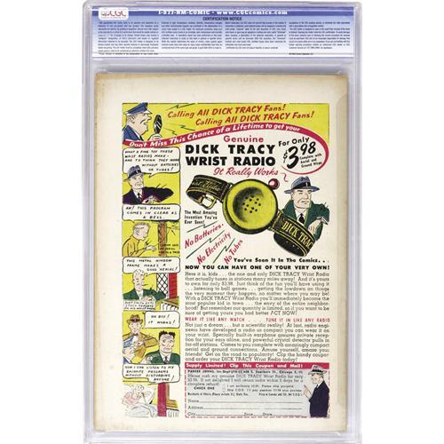 <B>All Top Comics #8 Davis Crippen ("D" Copy) pedigree (Fox Features Syndicate, 1947) CGC VF 8.0 Off-white pages.</B></I> Starting with this issue, it was goodbye to funny animals and hello to exploitation fare! Think of it as a sleazy <B>All-Select</B></I>, giving an additional showcase to the most popular characters from other titles: Blue Beetle, Phantom Lady, and Rulah the Jungle Goddess all made their series debuts here. Jack Kamen is credited with the cover; check out Rulah and the amazing pair she's got (we mean the two <I>pygmies</B></I>, mind you). Matt Baker provided interior art for the issue. Overstreet 2006 VF 8.0 value = $1,619. CGC census 6/06: 2 in 8.0, 2 higher. <I>From the Crippen Collection.</B></I> <BR><BR><B>Important notice:</B> Heritage usually auctions material at the rate of 200-250 lots per hour. On some occasions eBay Live bid software or the Internet may not be able to keep up with the pace of the auction. We recommend placing a realistic absentee bid now as insurance to avoid disappointment. Occasionally the auctioneer may eliminate or reject an eBay Live bid, and the auctioneer may also reopen a lot after the close of the eBay live bidding (usually because we missed an audience bid), and may reject your bid even if it shows you as the winning bidder. By bidding via eBay Live, you agree that Heritage may award the lot to another bidder at its sole discretion under the circumstances described above or any other reasonable circumstances. Since eBay bids are not shown to us until we open the lot on the floor, we treat those bids just like floor bids. In most cases the floor responds before the eBay bid is presented to us, due to Internet lag time, so for consistency we have made it a policy that floor bids are always considered first over tie eBay live bids. Also please note that all Heritage lots purchased through eBay Live carry a 22.5% Buyer's Premium. Please make sure you read the Terms and Conditions before you bid. This lot is being auctioned in conjunction with a live floor auction by Heritage Auction Galleries. All final auction and invoice information will be supplied by Heritage Auction Galleries, and all other information should be considered preliminary. Lot:41001 <BR><BR><B>Winning Notification and Billing:</B> After the FINAL session in this auction is complete, Heritage will send e-mail and snail mail invoices. This process normally takes several days. All final auction and invoice information will be supplied by Heritage Auction Galleries, and all other information should be considered preliminary. <BR><BR>This auction will be conducted on a live auction floor and over the Internet through eBay Live. If you choose to place an absentee bid, please take a moment to <font color='#0000ff'><u><a href='http://pages.ebay.com/liveauctions/help/before/laabsentee.html'>learn how eBay Live absentee bidding works</a></u></font><font color='#000000'>