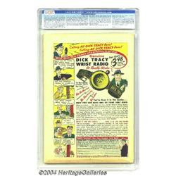<B>All Top Comics #8 (Fox Features Syndicate, 1947) CGC VG 4.0 White pages.</B></I> This is the most sought-after issue of the title's run, as Blue Beetle, Phantom Lady, and Rulah the Jungle Goddess made their <B>All Top</B></I> debuts. Jack Kamen's bondage cover has Rulah displaying an amazing pair of pygmies. With some female protagonists in the mix, it's a good thing the interior art was in the hands of prime portrayer of pulchritude, Matt Baker. Overstreet 2004 VG 4.0 value = $504. <BR><BR><B>Important notice:</B> Heritage usually auctions material at the rate of 200-250 lots per hour. On some occasions eBay Live bid software or the Internet may not be able to keep up with the pace of the auction. We recommend placing a realistic absentee bid now as insurance to avoid disappointment. Occasionally the auctioneer may eliminate or reject an eBay Live bid, and the auctioneer may also reopen a lot after the close of the eBay live bidding (usually because we missed an audience bid), and may reject your bid even if it shows you as the winning bidder. By bidding via eBay Live, you agree that Heritage may award the lot to another bidder at its sole discretion under the circumstances described above or any other reasonable circumstances. Since eBay bids are not shown to us until we open the lot on the floor, we treat those bids just like floor bids. In most cases the floor responds before the eBay bid is presented to us, due to Internet lag time, so for consistency we have made it a policy that floor bids are always considered first over tie eBay live bids. Also please note that all Heritage lots purchased through eBay Live carry a 20% Buyer's Premium. Please make sure you read the Terms and Conditions before you bid.