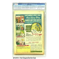 <B>All Top Comics #9 (Fox Features Syndicate, 1948) CGC FN+ 6.5 Off-white to white pages.</B></I> Rulah's appellation is "Jungle Goddess," and we won't dispute that after thrilling to Jack Kamen' s cover rendering of the athletic beauty. Appreciating flowers of femininity as we do, the news that Matt Baker art is inside the comic only broadened the smiles on our faces. The characters appearing within include Phantom Lady, Blue Beetle, and Jo-Jo. Overstreet 2004 FN 6.0 value = $390. <BR><BR><B>Important notice:</B> Heritage usually auctions material at the rate of 200-250 lots per hour. On some occasions eBay Live bid software or the Internet may not be able to keep up with the pace of the auction. We recommend placing a realistic absentee bid now as insurance to avoid disappointment. Occasionally the auctioneer may eliminate or reject an eBay Live bid, and the auctioneer may also reopen a lot after the close of the eBay live bidding (usually because we missed an audience bid), and may reject your bid even if it shows you as the winning bidder. By bidding via eBay Live, you agree that Heritage may award the lot to another bidder at its sole discretion under the circumstances described above or any other reasonable circumstances. Since eBay bids are not shown to us until we open the lot on the floor, we treat those bids just like floor bids. In most cases the floor responds before the eBay bid is presented to us, due to Internet lag time, so for consistency we have made it a policy that floor bids are always considered first over tie eBay live bids. Also please note that all Heritage lots purchased through eBay Live carry a 20% Buyer's Premium. Please make sure you read the Terms and Conditions before you bid.