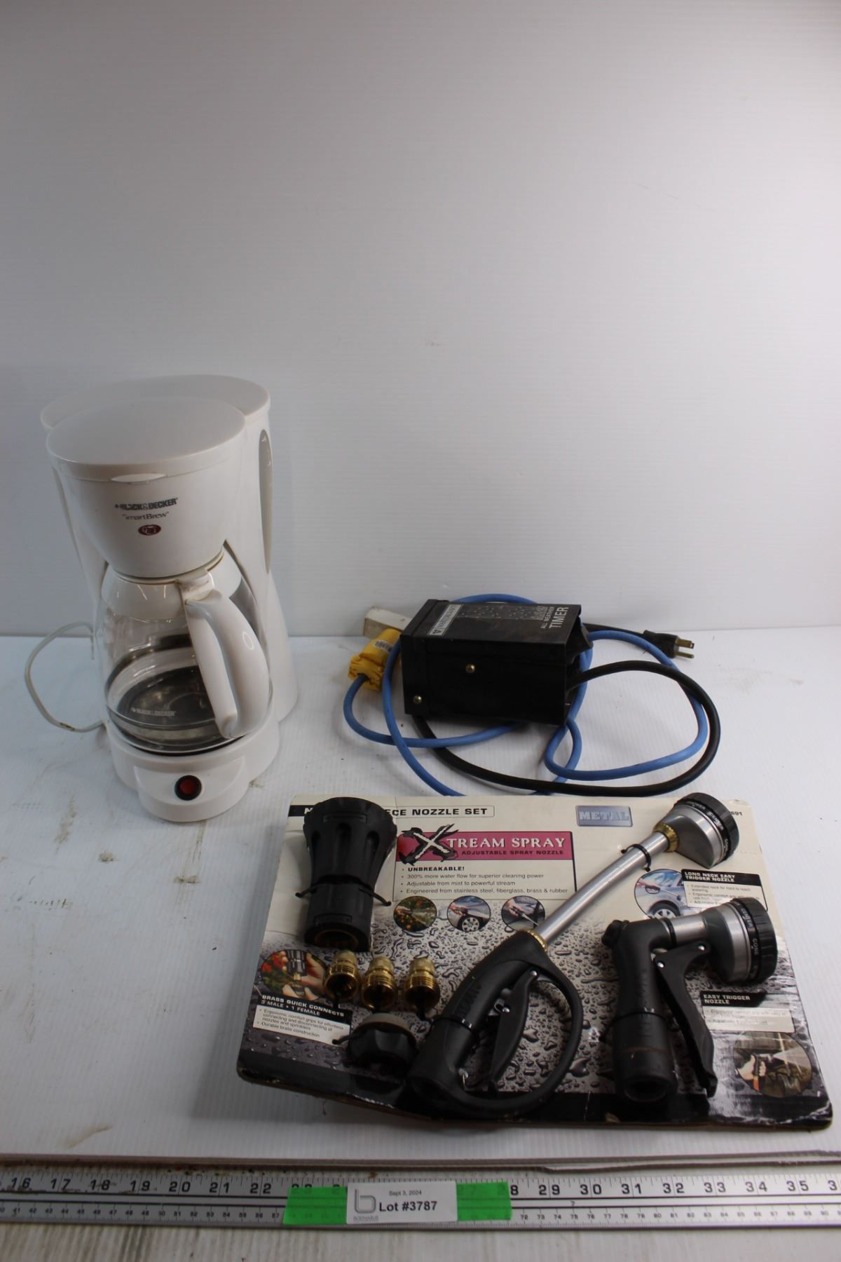 All Weather Timer, Black & Decker Coffee Machine - Untested and 7pc Nozzle Set - New