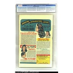 All Winners Comics #15 (Timely, 1945) CGC VF+ 8.5 Off-white to white pages. An unmistakable Alex Schomburg cover highlights this terrific book. Highly collected to this day, Schomburg's style is perhaps the most recognizable of any Golden Age artist. A shield-toting Cap, a machine-gun wielding Bucky, and a gigantic Sub-Mariner make short work of these buck-toothed soldiers from the Land of the Rising Sun. A very tough issue to find in grades above FN 6.0, this is the highest CGC- graded copy to date. Overstreet 2003 VF 8.0 value = $844; VF/NM 9.0 value = $1,197. Important notice: Heritage usually auctions material at the rate of 200-250 lots per hour. On some occasions eBay Live bid software or the Internet may not be able to keep up with the pace of the auction. We recommend placing a realistic absentee bid now as insurance to avoid disappointment. Occasionally the auctioneer may eliminate or reject an eBay Live bid, and the auctioneer may also reopen a lot after the close of the eBay live bidding (usually because we missed an audience bid), and may reject your bid even if it shows you as the winning bidder. By bidding via eBay Live, you agree that Heritage may award the lot to another bidder at its sole discretion under the circumstances described above or any other reasonable circumstances. Also please note that all Heritage lots purchased through eBay Live carry a 20% Buyer's Premium. Please make sure you read the Terms and Conditions before you bid.