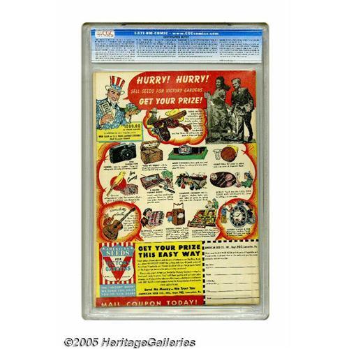 <B>All Winners Comics #8 (Timely, 1943) CGC VF 8.0 Off-white pages.</B></I> Only one copy tops this one in CGC's latest census report, and that one's just a half-grade higher at 8.5! The issue's rousing war cover is the work of Alex Schomburg. Inside the comic, Timely's ""Big Three"" of Captain America, Sub-Mariner, and Human Torch (appearing in separate stories) are joined by the Whizzer and the Destroyer. Overstreet 2005 VF 8.0 value = $1,200. CGC census 9/05: 1 in 8.0, 1 higher. <BR><BR><B>Important notice:</B> Heritage usually auctions material at the rate of 200-250 lots per hour. On some occasions eBay Live bid software or the Internet may not be able to keep up with the pace of the auction. We recommend placing a realistic absentee bid now as insurance to avoid disappointment. Occasionally the auctioneer may eliminate or reject an eBay Live bid, and the auctioneer may also reopen a lot after the close of the eBay live bidding (usually because we missed an audience bid), and may reject your bid even if it shows you as the winning bidder. By bidding via eBay Live, you agree that Heritage may award the lot to another bidder at its sole discretion under the circumstances described above or any other reasonable circumstances. Since eBay bids are not shown to us until we open the lot on the floor, we treat those bids just like floor bids. In most cases the floor responds before the eBay bid is presented to us, due to Internet lag time, so for consistency we have made it a policy that floor bids are always considered first over tie eBay live bids. Also please note that all Heritage lots purchased through eBay Live carry a 20% Buyer's Premium. Please make sure you read the Terms and Conditions before you bid. This lot is being auctioned in conjunction with a live floor auction by Heritage Galleries & Auctioneers. All final auction and invoice information will be supplied by Heritage Galleries & Auctioneers, and all other information should be considered preliminary.