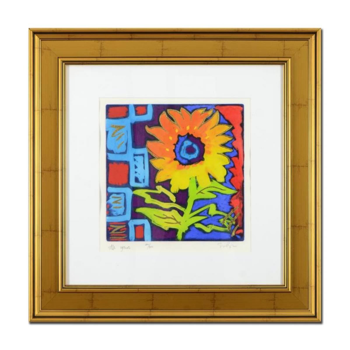 "All Yours" is a hand colored limited edition etching on rag paper by Simon Bull, numbered and hand signed by the artist. Includes Letter of Authenticity. Measures approx. 24.5" x 24.5" (framed), 12" x 12" (image). There is minor wear on the corners and edges of the frame.