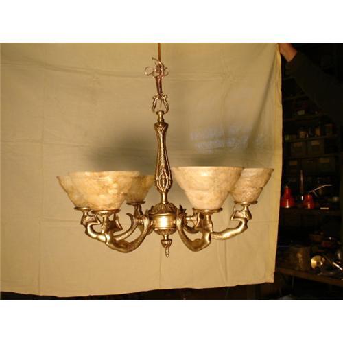 <tr><td>Title:All cast bronze and alabaster chandelier</td></tr>