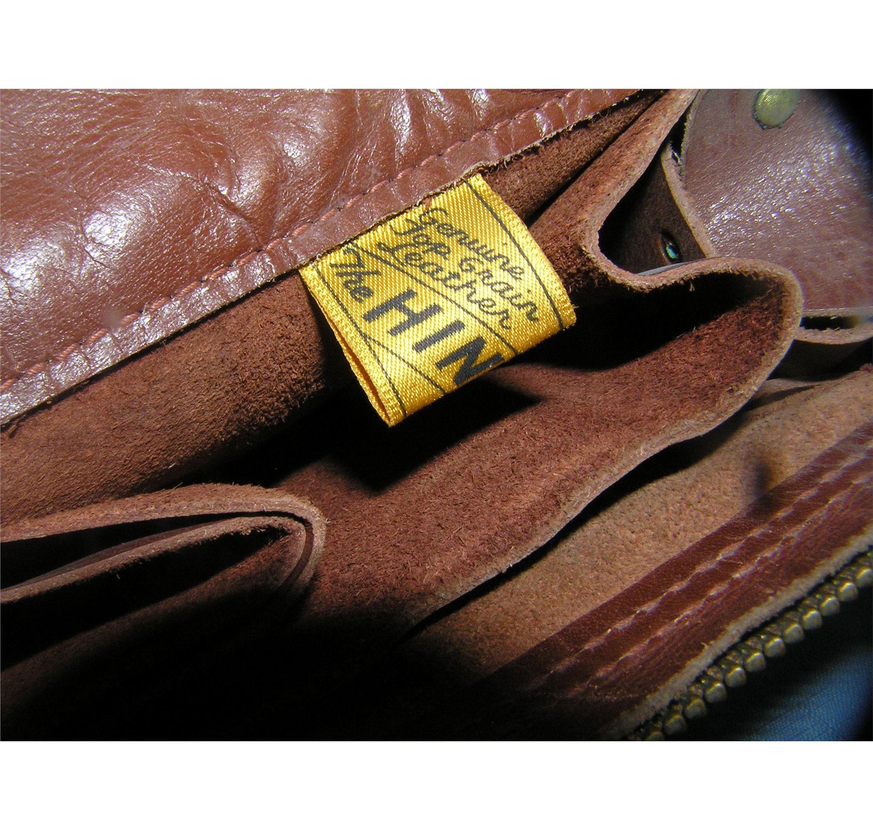 All leather dual pocket multi pouch men's carry all by the Hinson Mfg Co. in Waterloo IA USA appears to be for hunting, fishing or photography has an exterior pouch, large inner pouch with multiple compartments and a zippered under lid compartment est. value $65.00-$75.00