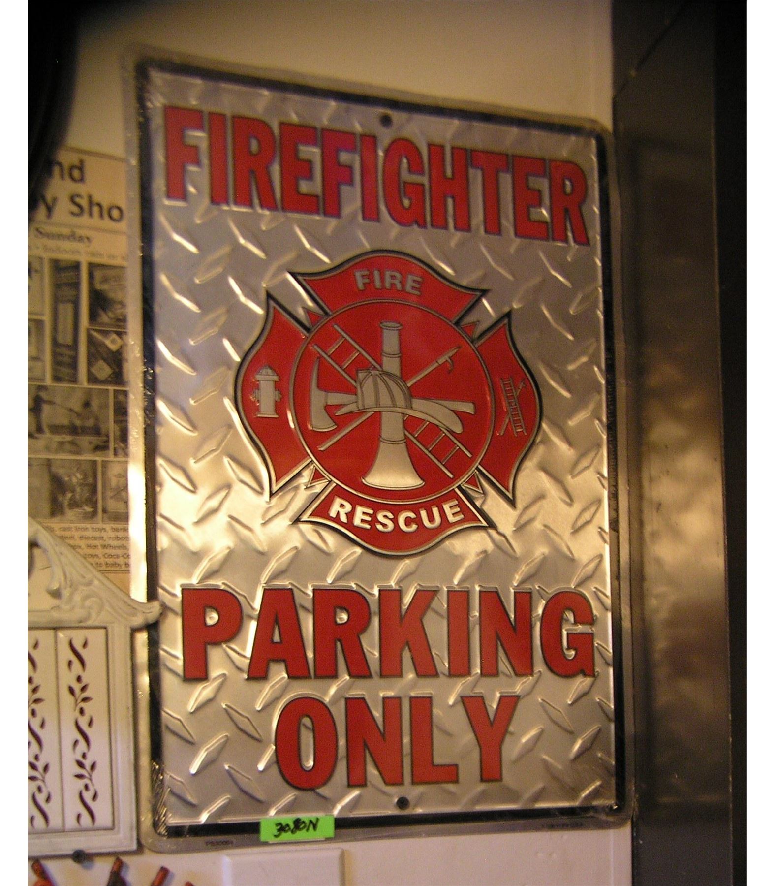All metal fire fighter parking only display sign est. value $35.00-$40.00