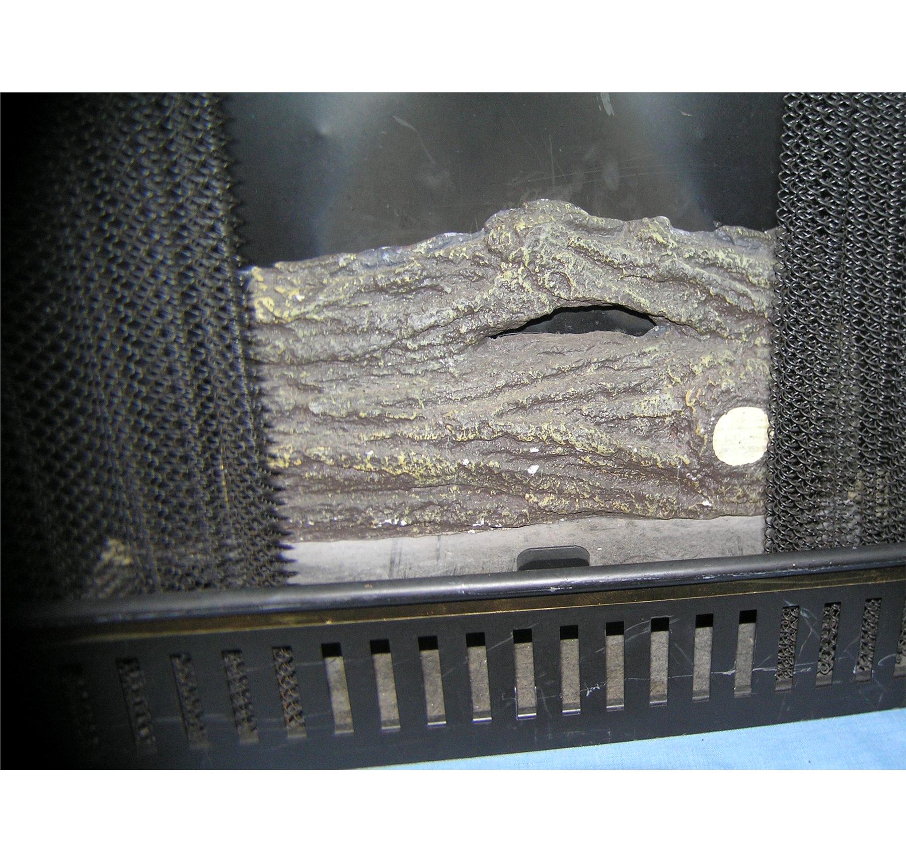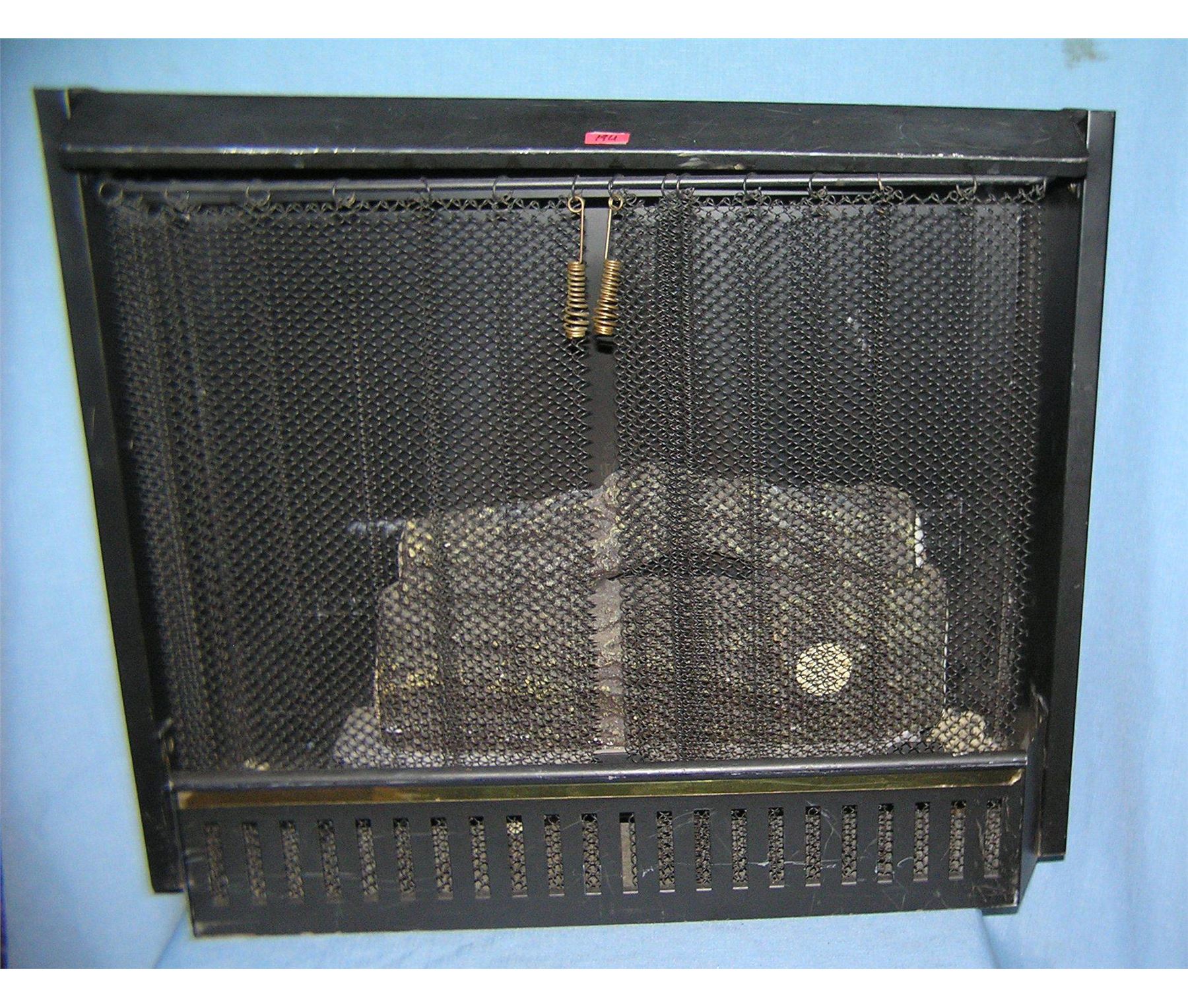 All metal with movable screen fire place box with simulated log set est. value $75.00-$100.00
