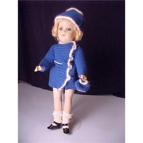 This Mary Hoyer composition doll is in great condition. She has no crazing on her head or body that I can see. Her sleep eyes work well. She is marked Mary Hoyer in raised letters on her back. Her wig is original and has not been combed. The crocheted clothes are from a Mary Hoyer pattern. The socks are rayon and are old ones. Her shoes appear to be newer. The only flaw is a tiny craze line in the palm of each hand. The picture magnifies the lines as they are not big or noticeable. It is rare to get a compo Mary Hoyer in this fine condition. I can only put 4 pictures on so I didn't have room for a good close up. Please send for one as they show her beautiful painting(eye shadow) and pretty glass eyes. If pictures are fuzzy please email for good ones. Ask for disk 21. Thanks.