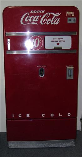 All original "Vendo" Coca-Cola machine set for 10 cents 40's or 50's and in great original condition 80 bottle capacity