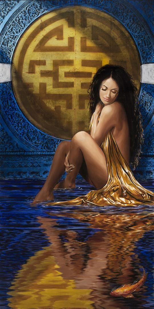 As the saying goes -- so goes this gal in gold . A stunning work of art, this 48"x24" giclee on canvas is a DELLORCO classic. S/n with COA.
