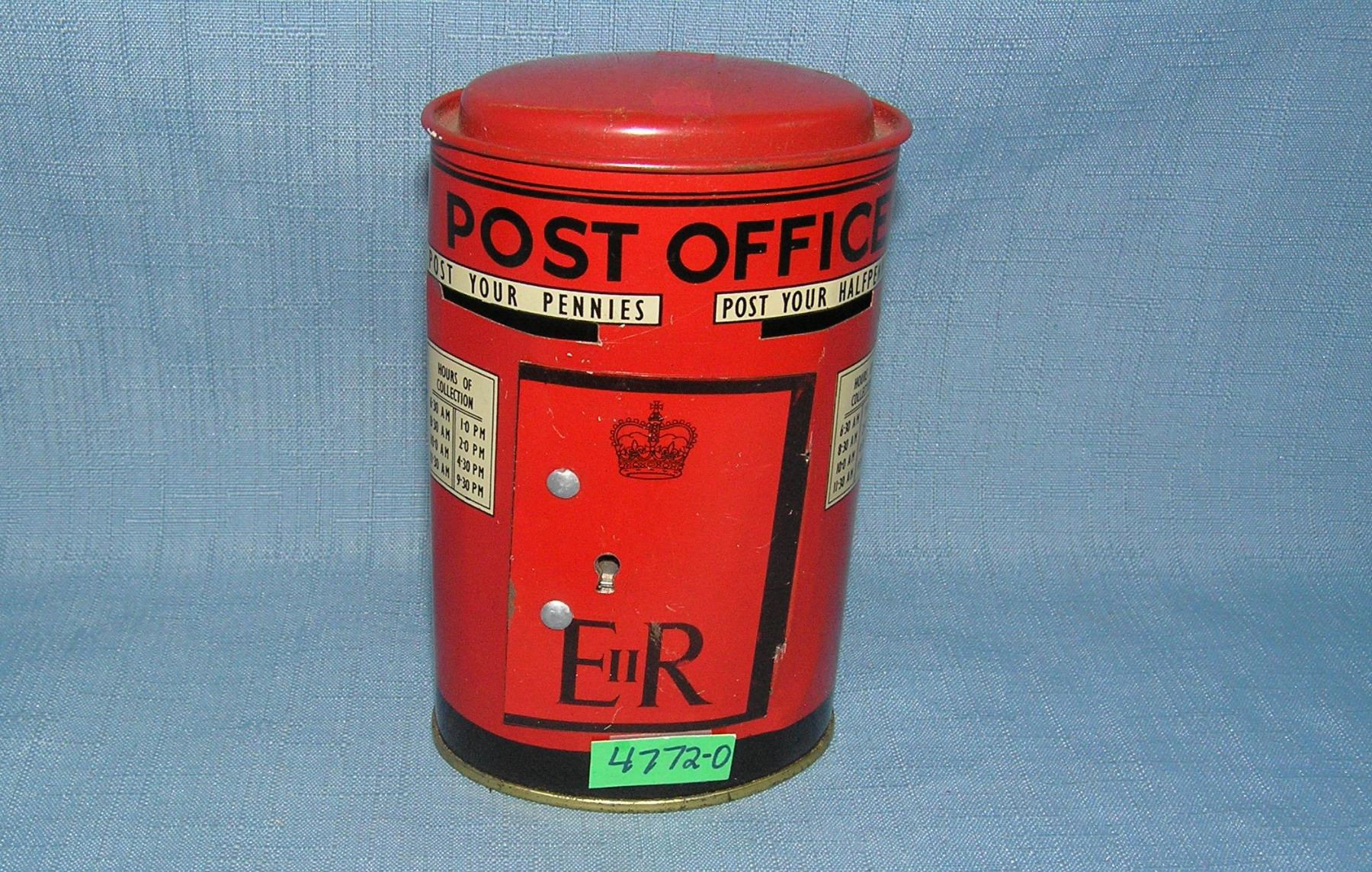 All tin Post Office bank with key est. value $75.00-$80.00