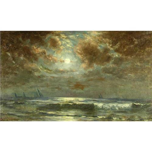 Canadian [1869-1949] SHIPS IN THE MOONLIGHT oil on canvas, relined 23.5 x 39 in. (59.7 x 99 cm) signed