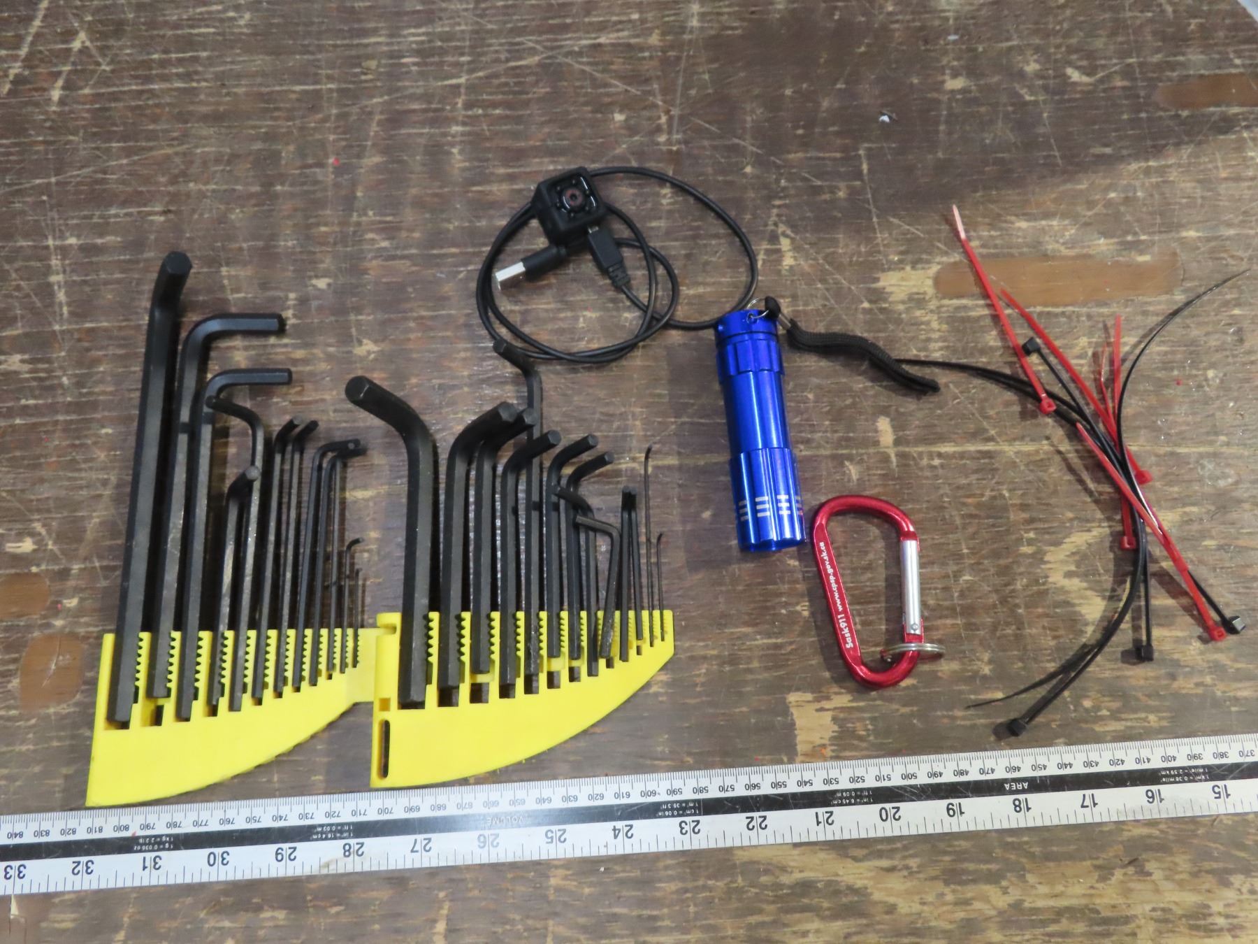 Allan Key Set, Zip Ties, flashlight, 1040 surveillence camera
