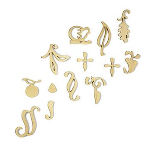 Allan McCollum and Louise Lawler<BR>Fixed Intervals<BR>USA, 1992<BR>lacquered and cut brass<BR>32 w x 33 d x .5 h inches<BR>These works are number five from the edition of twenty-five. Incised signature, date and edition number to each element: [Allan McCollum Louise Lawler 1992].<BR><BR>Condition of the item is not included in this description. Condition reports are available from Wright upon request. Wright strongly recommends that you review a condition report for each item on which you plan to bid.
