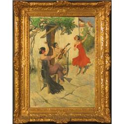 Oil on canvas, laid on panel, signed, 56 x 41 cm