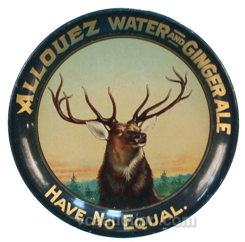Allauez Water & Ginger Ale Tin Tip Tray, "Have No Equal" in excellent condition - 4" diam