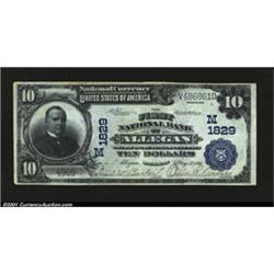 Allegan, MI- $10 1902 Plain Back Fr.<p>627 The First NB Ch. # (M)1829A very scarce bank which issued large notes only. The Kelly census shows only eight examples recorded, with this piece by far the nicest we've handled. Bright About Uncirculated, with great color and strong signatures. Important notice: We expect to be auctioning lots at the rate of 200-250 per hour. Sometimes eBay Premier live bid software cannot keep up with that pace, so we strongly recommend that you place a realistic proxy bid now as insurance to avoid disappointment. Also please note that all Heritage/CAA lots purchased through eBay Premier carry a 20% Buyer's Premium.