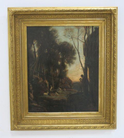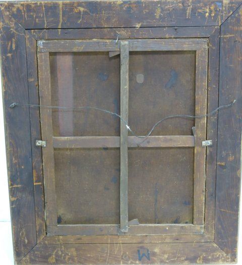 Oil on canvas. Framed. Approx. 24" x 20" without frame, 33' x 29" with frame. Restorations, relined.