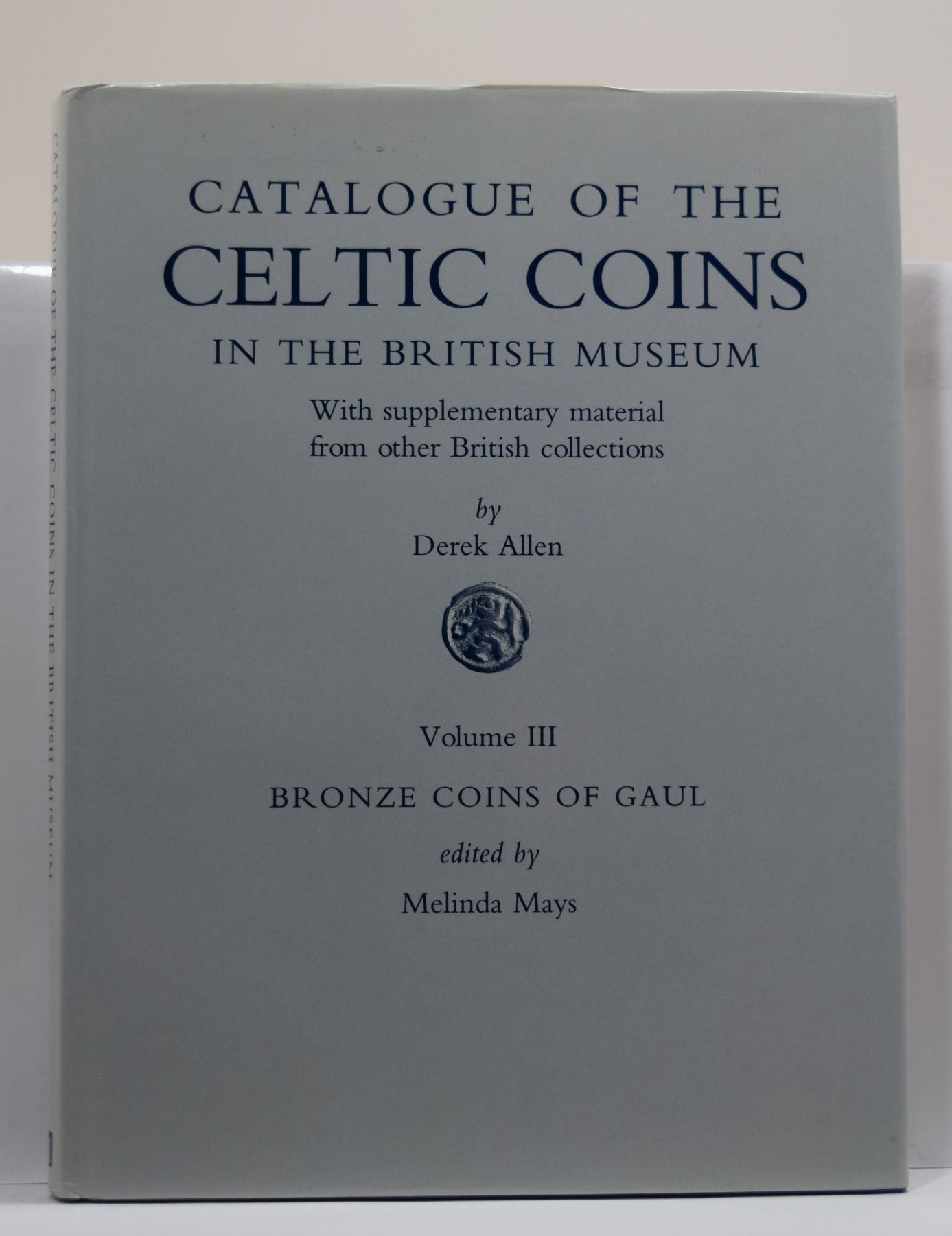 Allen, Derek & Melinda Mays (ed.). CATALOGUE OF THE CELTIC COINS IN THE BRITISH MUSEUM WITH SUPPLEMENTARY MATERIAL FROM OTHER BRITISH COLLECTIONS - VOLUME III BRONZE COINS OF GAUL. British Museum Press. 1995. 4to, 106 pages; Hardcover w/ DJ; 38 plates. Subject: Coinage - Great Britain