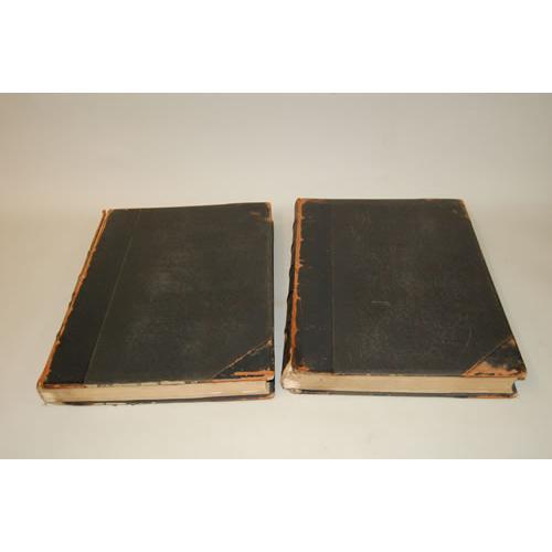 Allen, Fred H.. The Great Cathedrals of the World - 2 Volumes. Boston: Haskell & Post Company, 1886. Elephant Folio - over 15" - 23" tall. Hard Cover. Ex-Library. Very Good Condition. Complete with 130 photogravure plates (some tinted) with explanatory and descriptive text, tissue guards intact. 1) vii, 1 contents, 152pp. 2) 1 contents, 153-308pp. Both with half-titles, frontis & titles in red & black. Bound in 3/4 leather with raised bands on spines. Covers show edge wear, wear to upper/lower edges of backstrip, front cover loose (but attached) on vol. I. BINDINGS TIGHT