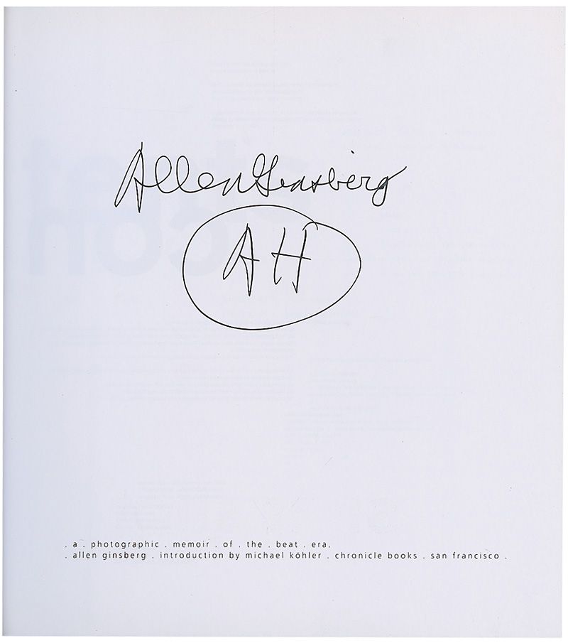 Signed book: Snapshot Poetics. First edition, first printing. San Francisco: Chronicle Books, 1993. Softcover, 8.75 x 9.5. Signed on the right side of the two-page title page by Ginsberg. In fine condition.