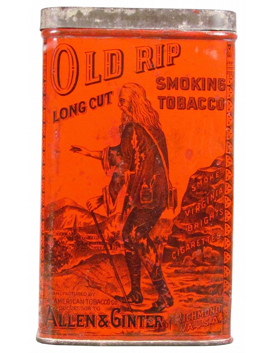 Allen & Ginter "Old Rip" Smoking Tobacco Tin. Mfg. by American Tobacco Co. A few dents and minor touch up otherwise good condition.